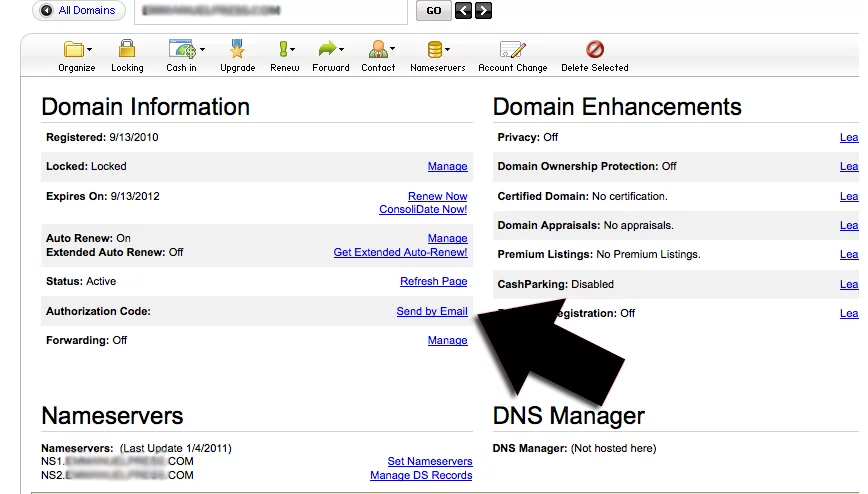 Under the Domain Manager, click the link next to the words ‘Authorization Code’ that says ‘Send by Email”