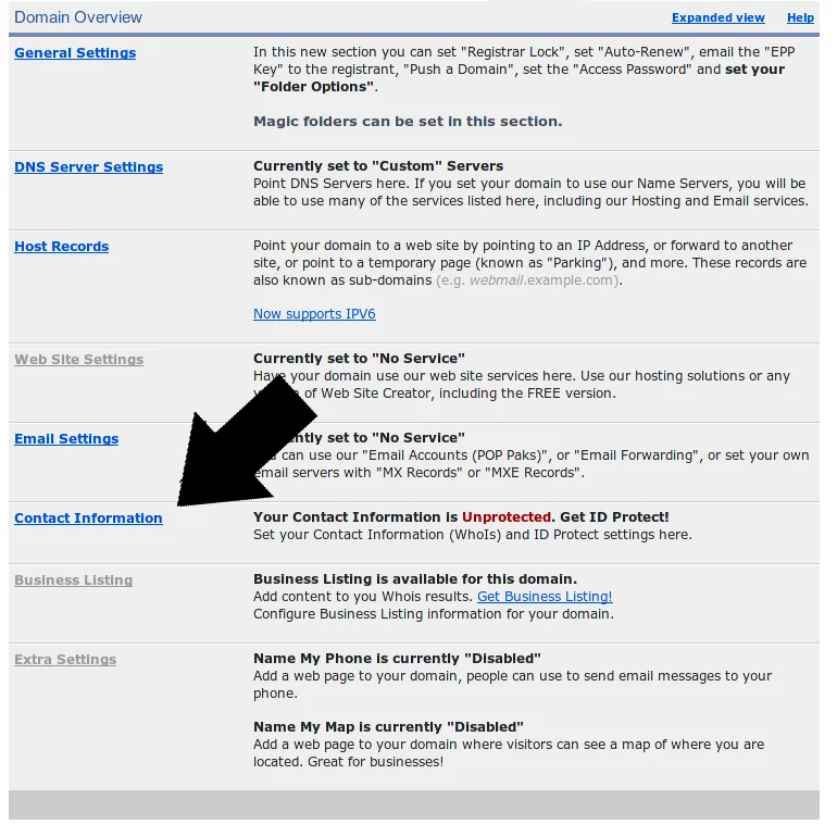From ‘Domain Overview’ select ‘Contact Information’ and make sure that your administrative contact email is accurate