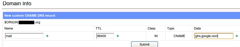 Enter ‘mail’ in the name field (without the quotes), leave the TTL at default, and under Data, enter