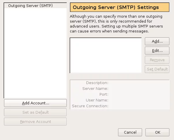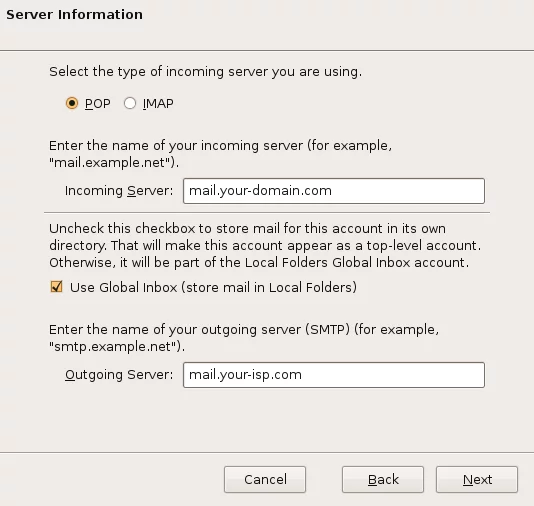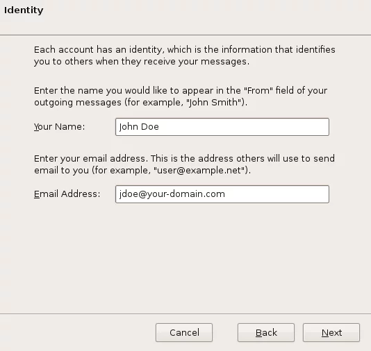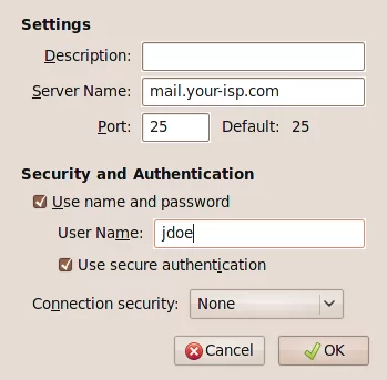 Thunderbird is an email client produced by Mozilla used for sending and receiving email. The screenshots include references to jdoe@your-domain.com and mail.your-isp.com. DO NOT use these as they are only examples. Instead, use your own email address and the name of the outbound email server provided by your Internet Service Provider (ISP).